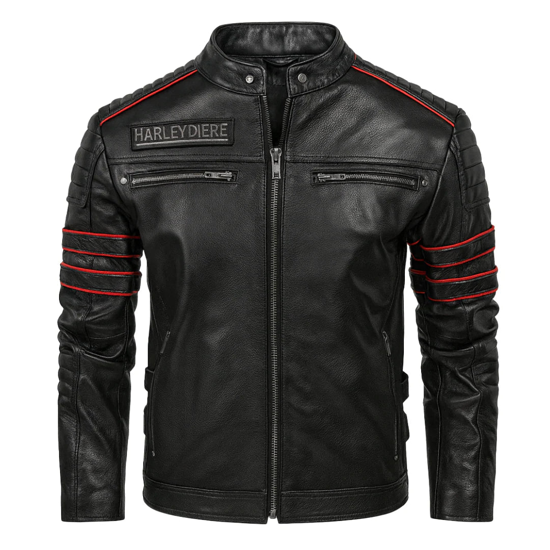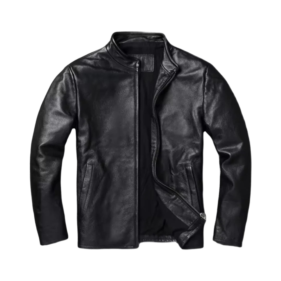 Men’s Fashion Leather Motorcycle Jacket — Real Leather with Straight Collar