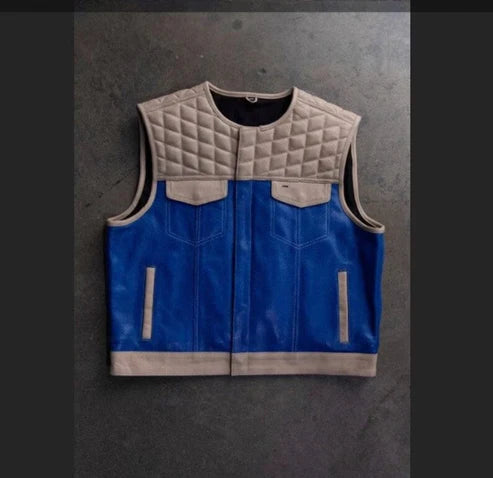 Stand out on the road with the Men’s Blue & White Leather Biker Vest—a bold...