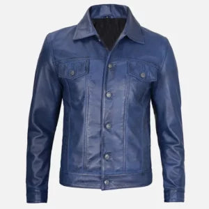 Product Description:The Men’s Blue Leather Trucker Jacket delivers rugged sophistication with a modern twist. Expertly...