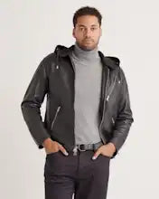 Men’s Black Detachable Hooded Leather Jacket — Real Leather with Soft Viscose Lining
