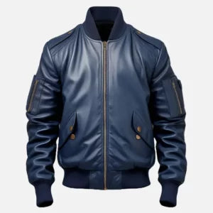 Product Description The Men’s Blue Flight Bomber Leather Jacket combines bold color with timeless design....