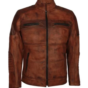 Product Description:The Men’s Brown Distressed Café Racer Motorcycle Jacket captures the essence of rugged adventure...