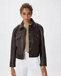 Perfect to pair with denim, skirts, or tailored trousers, this cropped leather jacket is a timeless wardrobe staple that blends style, comfort, and responsibility.