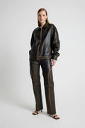 The Leather Tall Boy Jacket in Olive is a bold, oversized statement piece crafted from premium Italian leather. Designed with a dropped shoulder and center front zipper closure, it delivers both comfort and edge. Each jacket is hand-distressed, ensuring no two are exactly alike—every piece tells its own story.