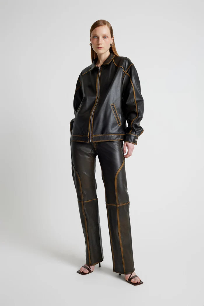 The Leather Tall Boy Jacket is more than just outerwear—it’s a collectible. With its hand-distressed finish and oversized fit, it balances individuality with timeless craftsmanship. This jacket makes a statement while aligning with ethical and sustainable values.